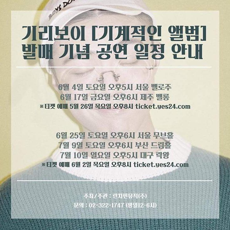 OOOO | 생각해보니까 무브홀에서 하는고 시험 5일전이네욥 ....!! 하지만 갈것..기리보이사랑해요 팬들위해 이렇게많이 콘서트 해줘서 넘넘고맙구ㅠㅠㅠ 특히 제주도 팬분들 좋아할거같아용💕 |