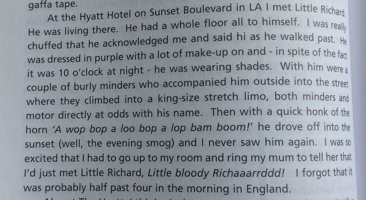 Here's my Little Richard anecdote now, so I don't look like a self-centered prick later on. |