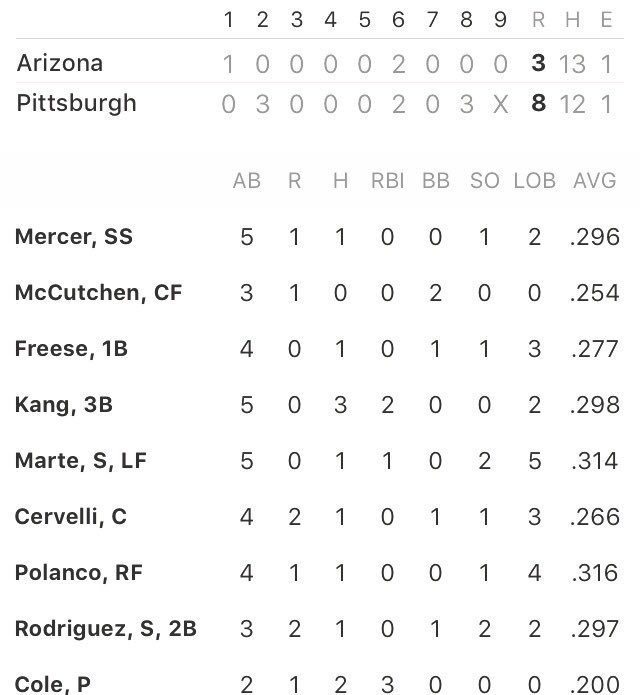 OOOO | 4번 타자 강정호 시즌 첫 3안타 경기. 그런데 투수 콜이 홈런치며 3타점 ^^ |