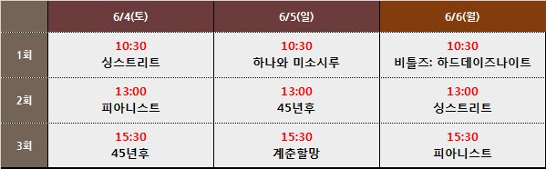 | OOOO | 엑아포를 볼지 계춘할망을 볼지 고민이군 싱스트릿 한번 더보고싶기도하고... |