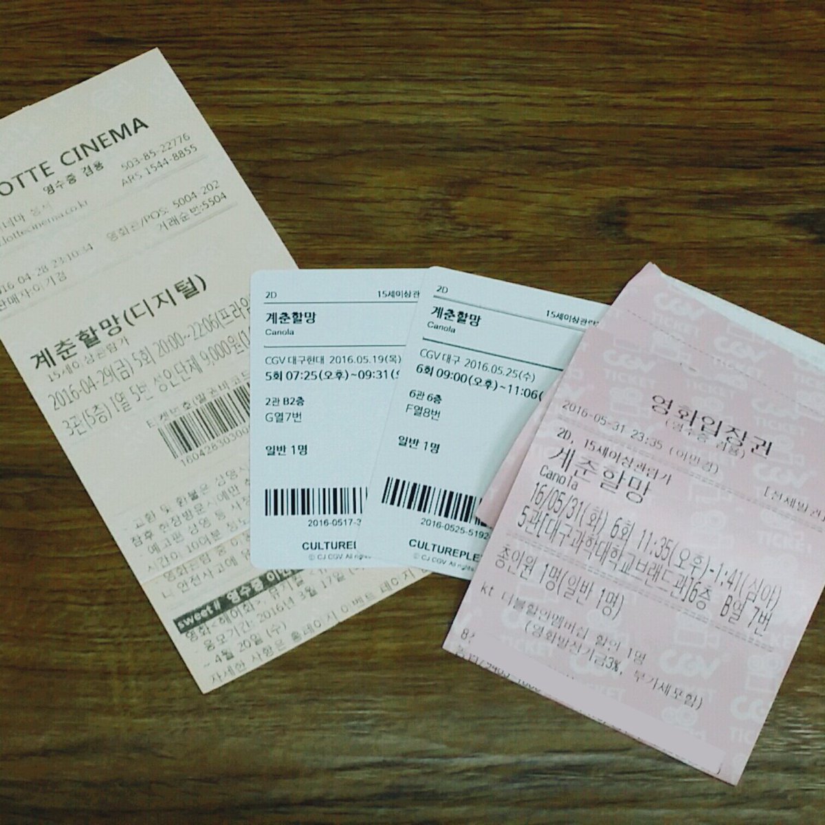 | OOOO | 이번주 영화관 3번 가겠다. 내일 계춘할망 수요일 아가씨 토요일 곡성GV 곡성 GV 2시니까 조조로 나의소녀시대나 미비포유나 둘중 하나봐야지 아아아아 영화 넘 좋아 행복해 💓💕💖💗💘💝💞💟 |