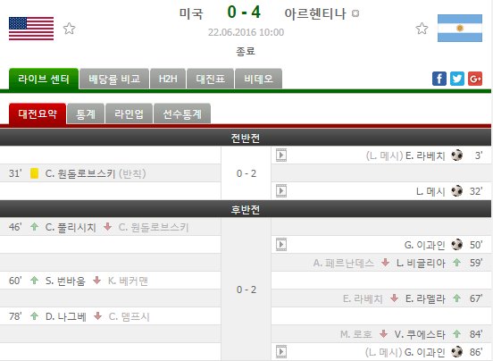 | OOOO | 아르헨티나 4-0 미국 경기 종료. |