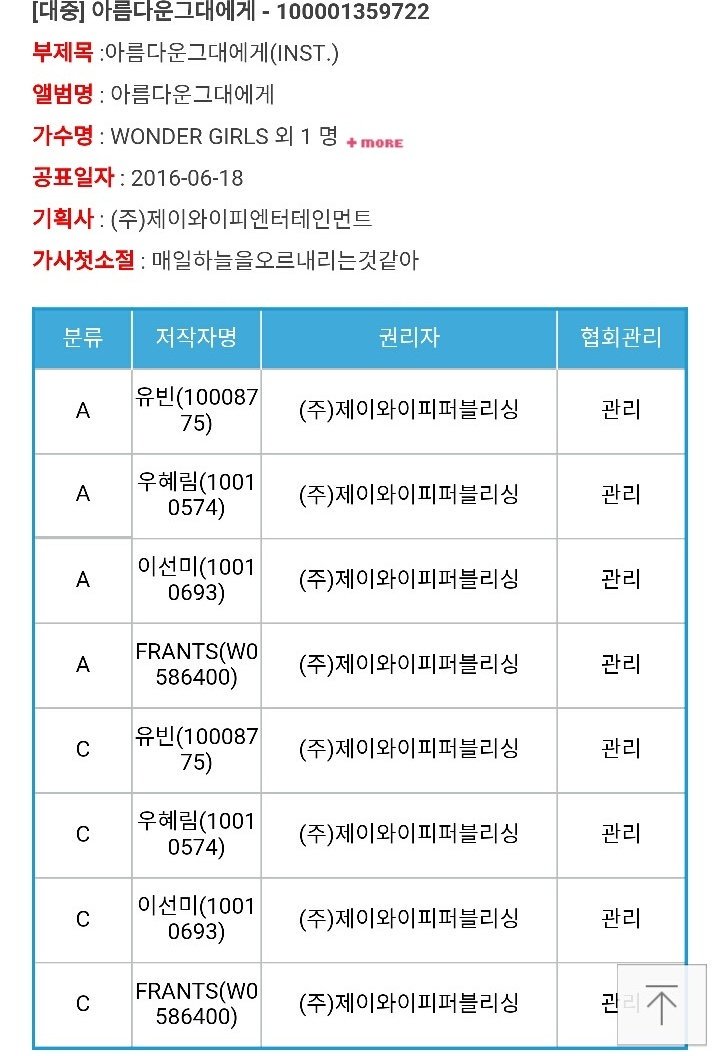 | OOOO | [#원더걸스/정보] 아름다운 그대에게 작사 선미, 유빈, 혜림, 프란츠 작곡 선미, 유빈, 혜림, 프란츠 작곡 천재ㅜㅜㅜ 작사 천재ㅜㅜㅜ |