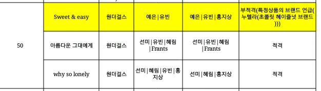 | OOOO | 72-9.without u.이게ㅋㅋㅋ박진영곡이라는걸 단번에 알수있는게 원더걸스 노바디에서 유를 '쮸'라고 발음하도록 했는데 그걸 여기서도 시킴ㅋㅋㅋㅋㅋㅋㅋㅋ그래서 이곡 좋아함,,^^ |