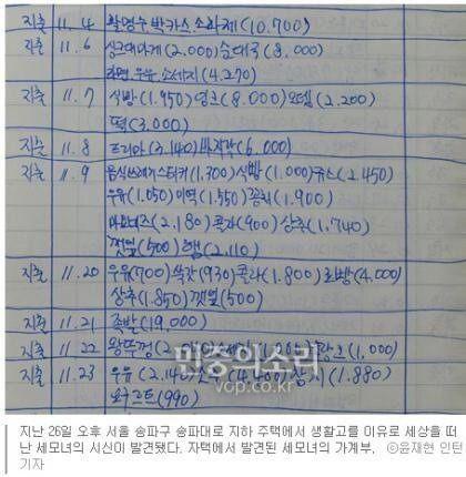 OOOO | 지난해 자살한 송파 세모녀의 20일동안 쓴 생활비 내역서. 이 걸 보고도, 최저임금을 그 따위로 결정하고, 복지는 빨갱이 수작이라고 하는 거냐? . |