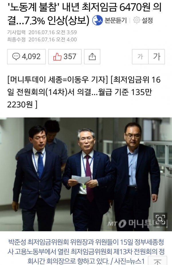 OOOO | 2017년 최저임금 6470원 결정 7.4% 인상 |