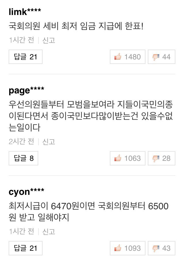OOOO | 국회의원들, 대통령 최저임금도 못 받게 하고 과로사 시키는게 최종 목표. |