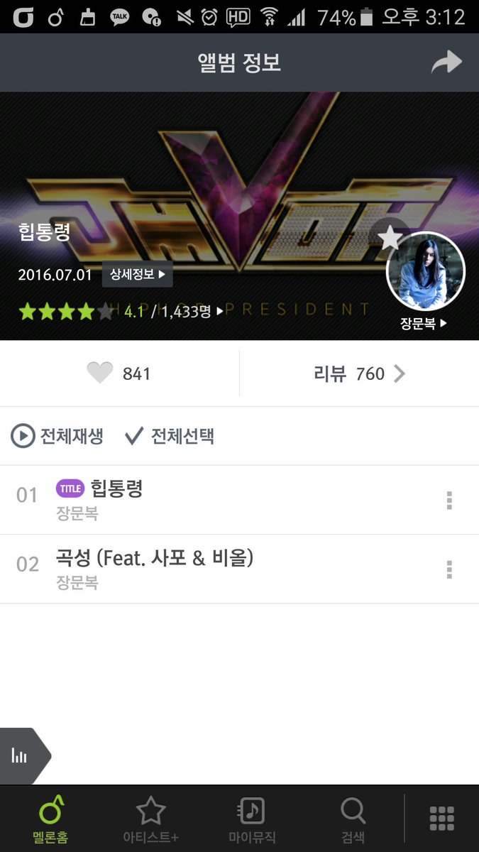 | OOOO | 장문복 - 힙통령 / 멜론 실시간 차트 40위! 멋집니다ㅋ 항상 응원함돠~^^ |