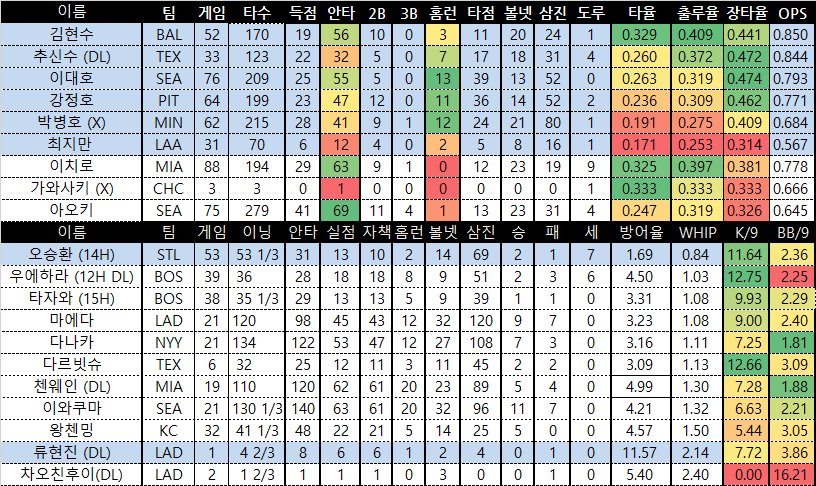 | OOOO | 이대호 3타수 1안타 1홈런 2볼넷 1득점 2타점 1삼진 김현수 4타수 2안타 최지만 4타수 1안타 1삼진 #MLB #아시아선수성적 |