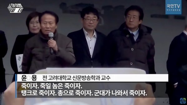| OOOO | 11월 12일 박근혜 하야반대집회에 모인 보수집회에서 나왔던 '민주주의 국가에서 계엄령을 선포해 탱크로 총으로 국민을 죽이자'고 외치는 발언을 보면 ‘보수 = 범죄자 집단’이라고 봐도 무방할 지경입니다 t.… |