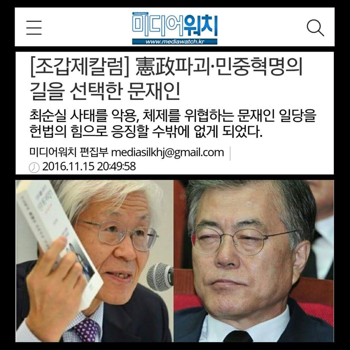 | OOOO | [조갑제칼럼] <憲政파괴·민중혁명의 길을 선택한 문재인> 최순실 사태를 악용, 체제를 위협하는 문재인 일당을 헌법의 힘으로 응징할 수밖에 없게 되었다. #무궁화 |
