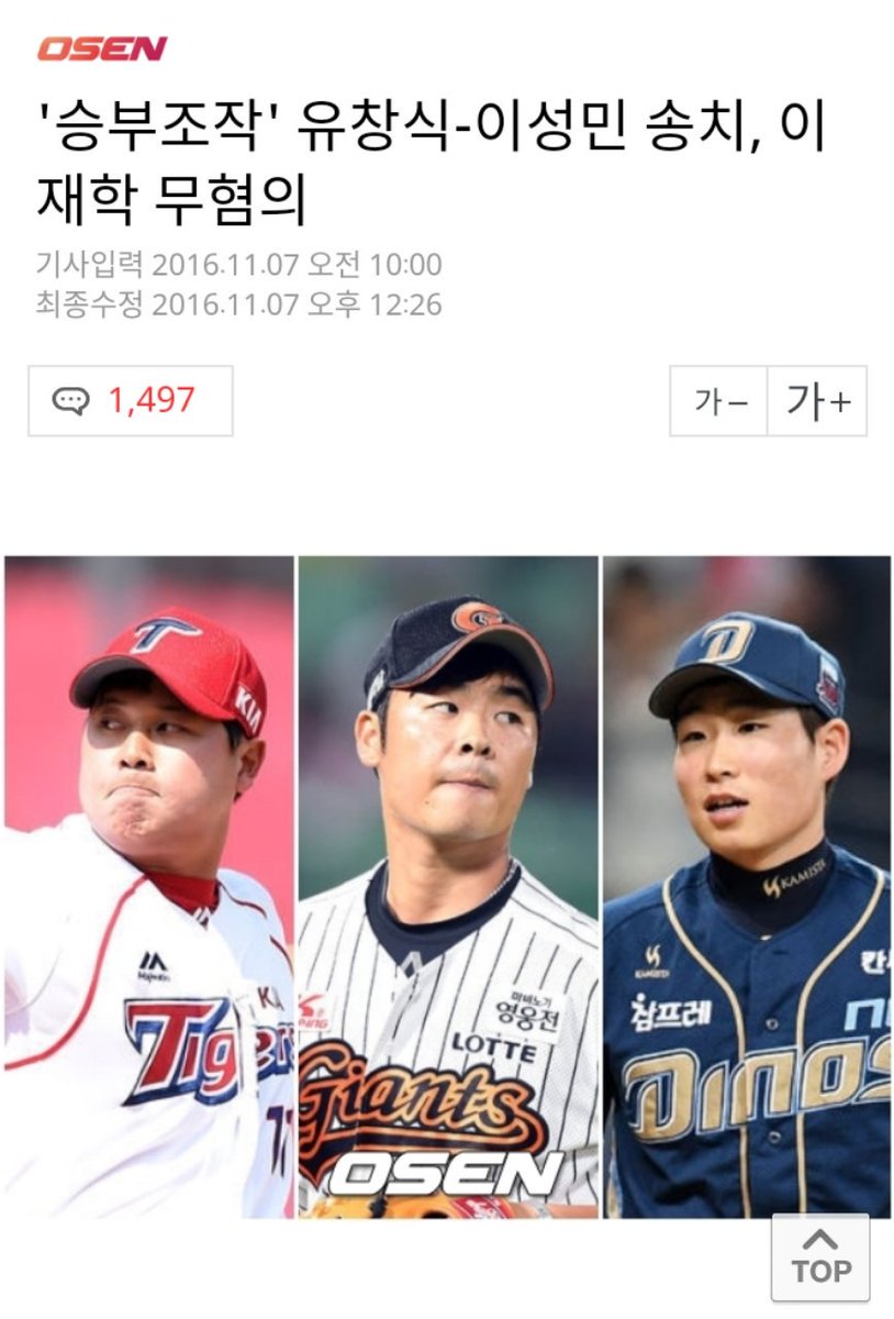 | OOOO | 좋은 소식 이재학 무혐의^^ 나쁜 소식 이성민 NC 시절 승부조작을 NC 구단이 조직적으로 은폐 했다는 혐의 ㅡㅡ |