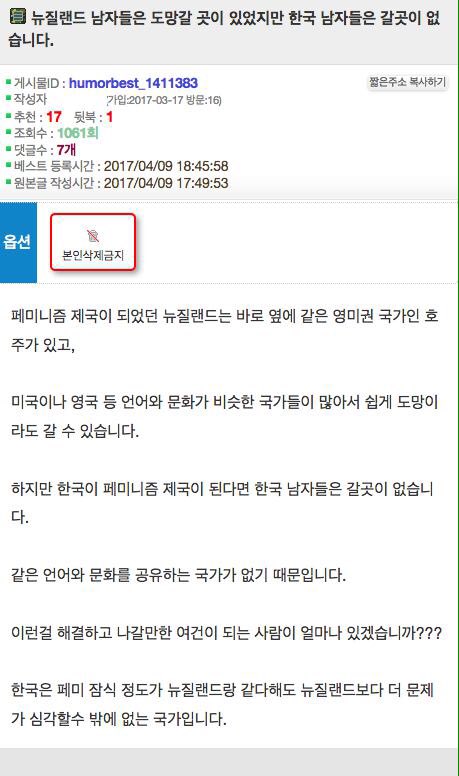 | OOOO | 사드가 배치돼서 참 기쁘네. 미군이 한반도에 엄청 몰려들어서 북한도 함부로 못하고. 요즘 내가 기분이 매우 좋다. 안보 대통령 뽑아서 북한 망하도록 유도해야지. 통일은 대… |
